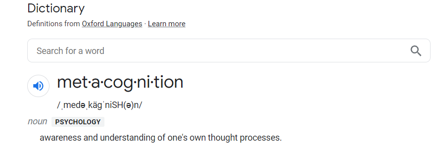Before I came up with a title for this blog I googled “what is metacognition?” Here’s what came up: